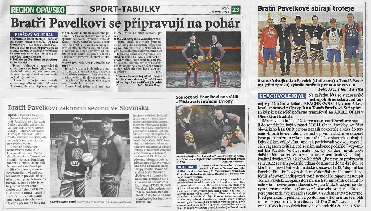 V první sezóně mezi českou elitou se beachvolejbalová dvojice bratří pavelků dokázala z nuly propracovat mezi 20 nejlepších dvojic v ČR. rok 2016 v řeči čísel - 22 turnajů, 10.000 km, 480 bodů v českém a 338 bodů ve světovém žebříčku!